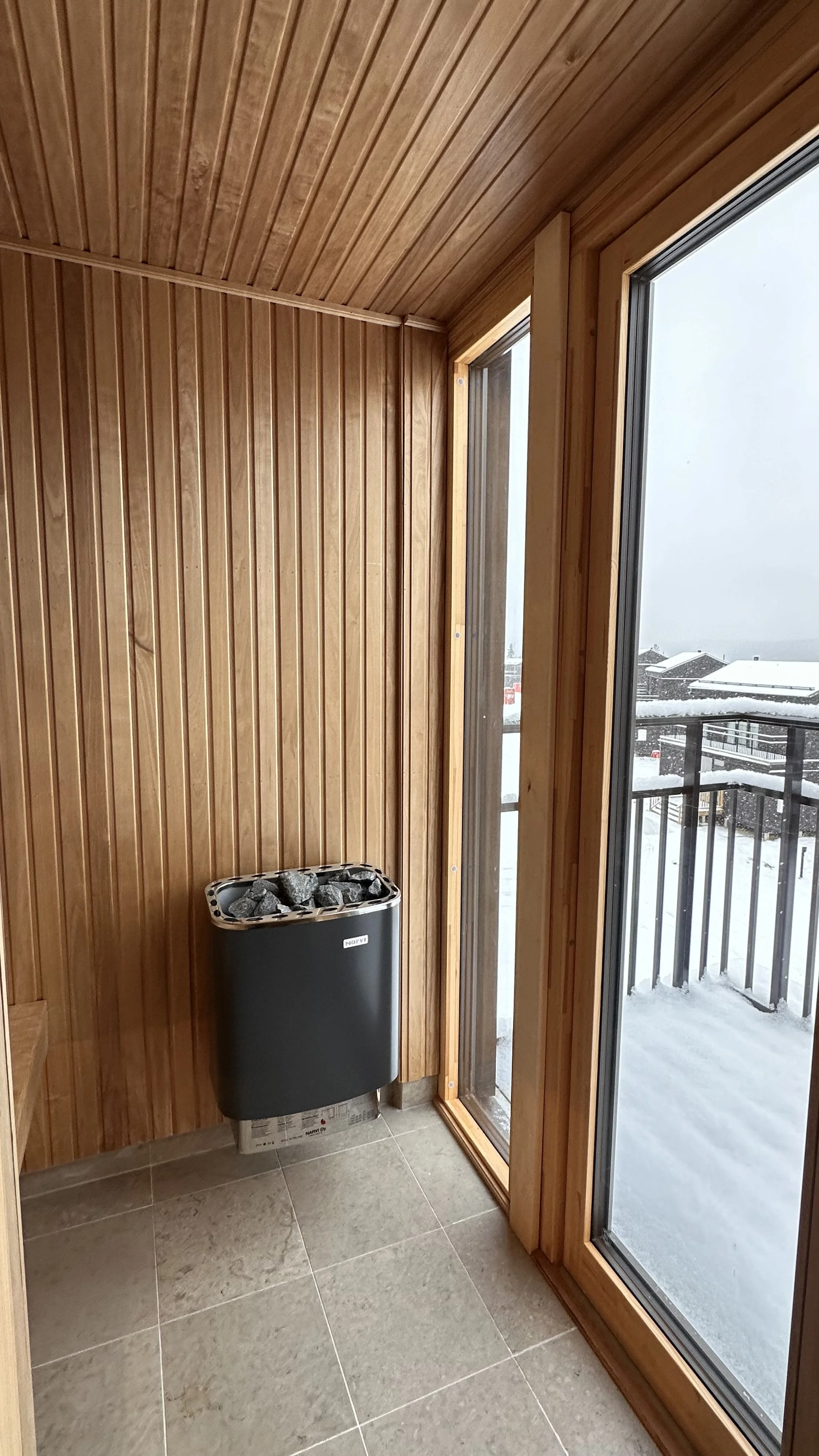 BASTU, SAUNA ELLER SVETTSTUGA? Kärt barn har många namn, men inte åker ni väl till fjällen utan att basta? Här bastar ni samtidigt som ni tittar ut över dalen. och Varför inte öppna dörren och lägga dig i snön på balkongen utanför..